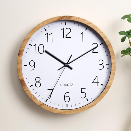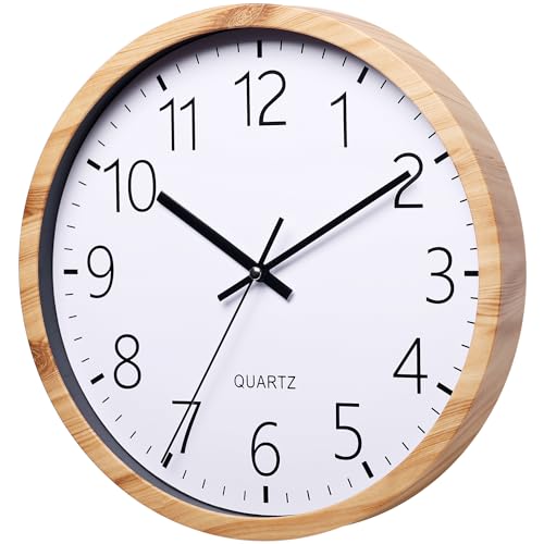 NUOVO 12 Zoll Imitation Holz runde Wanduhr, Wohnzimmer, Schlafzimmer, Küche, leise, Keine Zecken, minimalistische Moderne Retro Wanduhr (30 cm 12 Zoll)