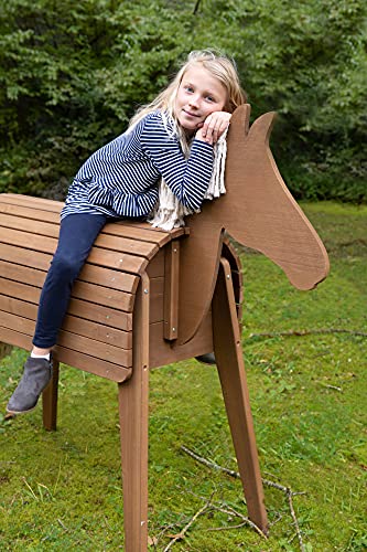 Das vielseitige Outdoor-Spielgerät für den Garten ist zum Klettern, Reiten, Voltigieren und Turnen geeignet. Mähne und Schweif des Gartenpferdes sind frisierbar.